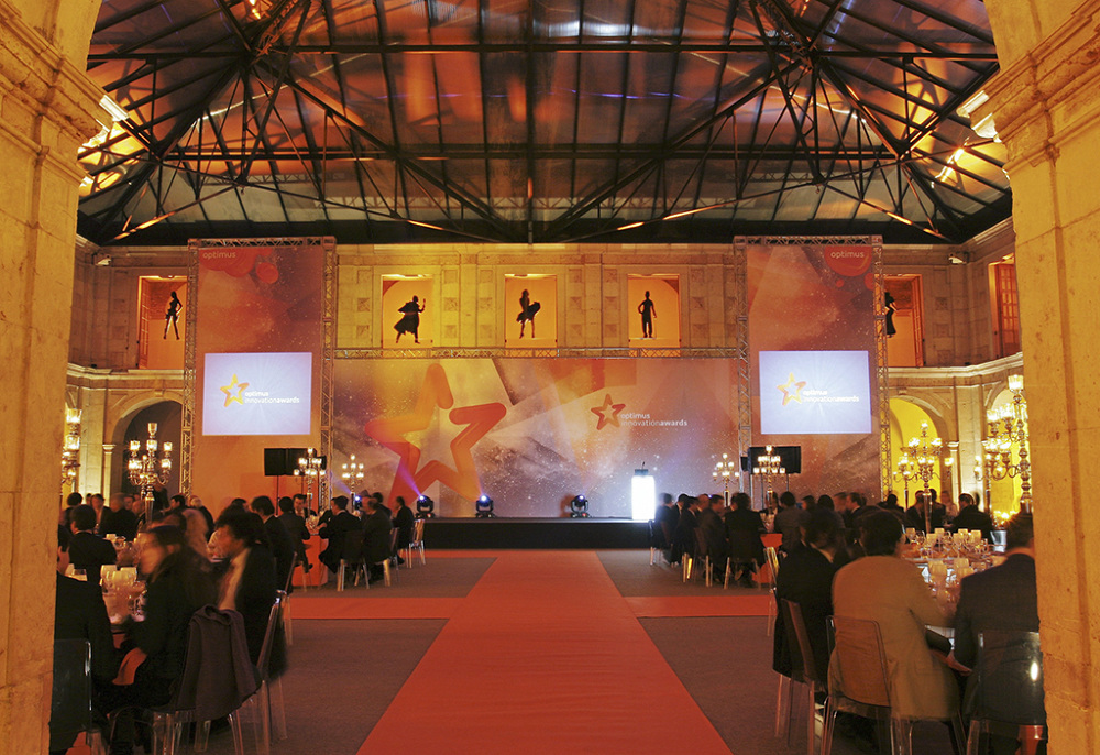 Creative development of invitations, awards, banners, gifts, posters, backdrops, menus and other space decoration for Optimus Innovation Awards. A yearly ceremony to award the best projects in telecommunications based on innovation.