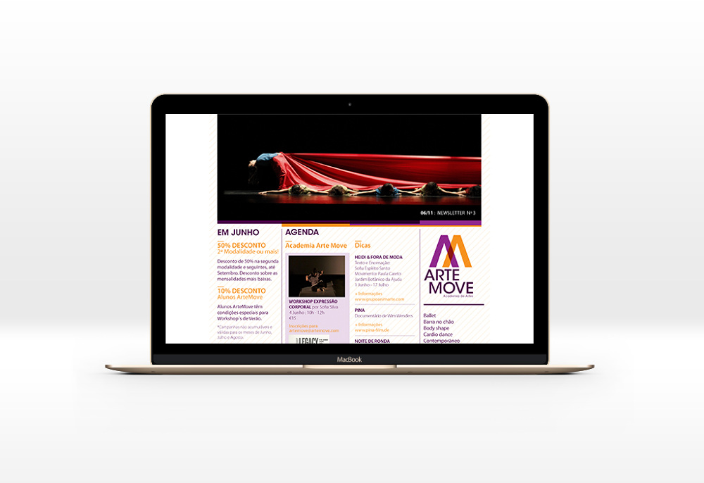 Creative development of logo, brand guidelines, poster, flyers, newsletter, banners, Christmas postcards and other promotional materials for Artemove. An inspirational Arts Academy brought together by a shared passion for dancing and performing arts.